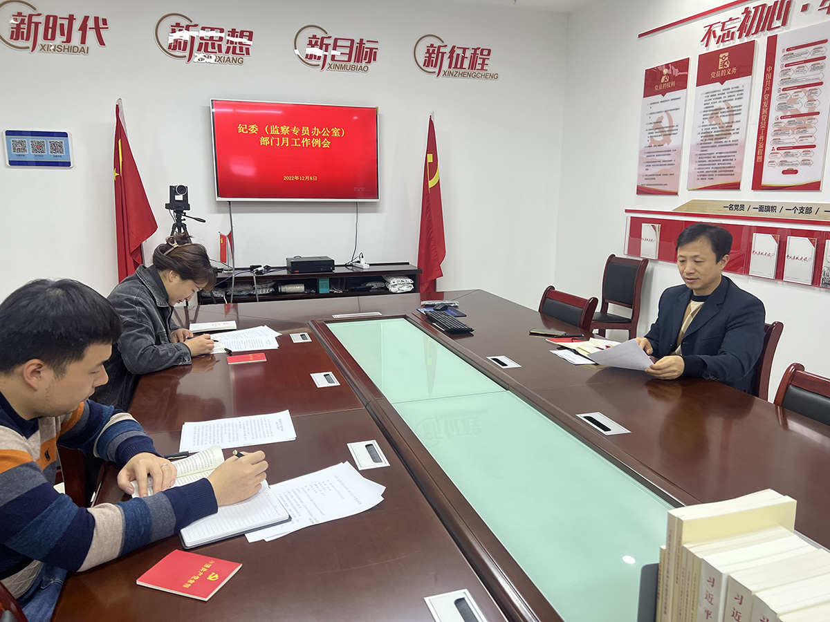 12月8日上午,紀(jì)委(監(jiān)察專(zhuān)員辦公室)在黨員活動(dòng)室召開(kāi)部門(mén)工作例會(huì),梳理總結(jié)2022年全年工作并對(duì)歲末年初工作進(jìn)行部署。