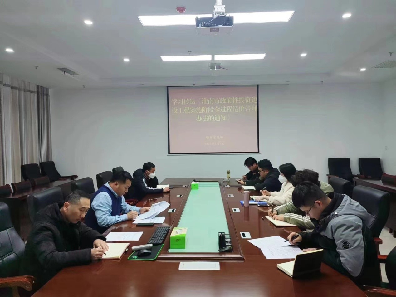 1月4日下午,項目管理部在集團公司435會議室召開專題學習會。會議學習傳達了《淮南市人民政府辦公室關于印發(fā)淮南市政府性投資建設工程實施階段全過程造價管理辦法的通知》和《關于印發(fā)<安全生產(chǎn)“三個狠抓”專項行動方案>的通知》文件精神。