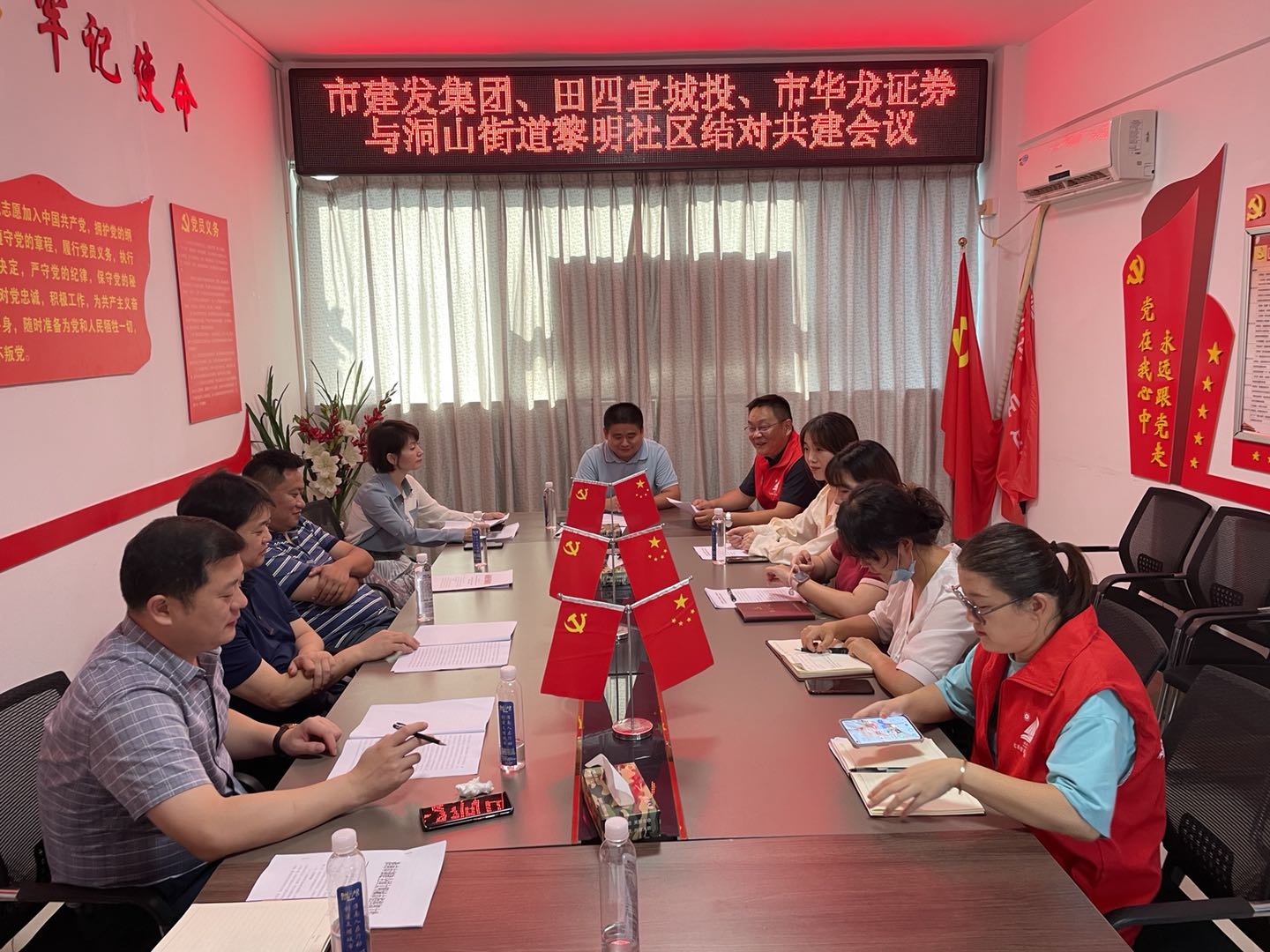 為認真貫徹落實(shí)市委市政府關(guān)于創(chuàng )建全國文明城市工作部署,持續加大與結對社區結對共建力度,9月10日下午,建發(fā)集團與田區四宜建投集團、華龍證券、田區洞山街道黎明社區召開(kāi)聯(lián)席會(huì )議,就結對共建的工作重點(diǎn)、共建方案等開(kāi)展調研座談。建發(fā)集團黨委副書(shū)記高友祿、四宜建投集團董事長(cháng)余宏偉、華龍證券淮南朝陽(yáng)西路證券營(yíng)業(yè)部總經(jīng)理姚登輝、洞山街道黨工委副書(shū)記胡傳松、黎明社區黨總支書(shū)記張賢及有關(guān)人員參加會(huì )議。