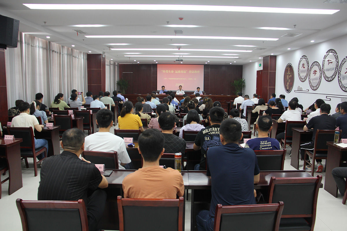 為不斷深化國有企業(yè)法治建設,切實(shí)增強干部職工學(xué)法、知法、遵法、用法的法治意識,在“6.26國際禁毒日”到來(lái)之際,6月17日,集團公司組織開(kāi)展了“珍愛(ài)生命 遠離毒品”專(zhuān)題普法教育,邀請了市強制隔離戒毒所黨委委員、副所長(cháng)、二級高級警長(cháng)胡曉品,醫務(wù)所負責人、二級警長(cháng)劉健,辦公室副主任、二級警長(cháng)李昌宏進(jìn)行指導授課。黨委書(shū)記、董事長(cháng)宋道河主持會(huì )議,領(lǐng)導班子成員、全體干部職工參加培訓。