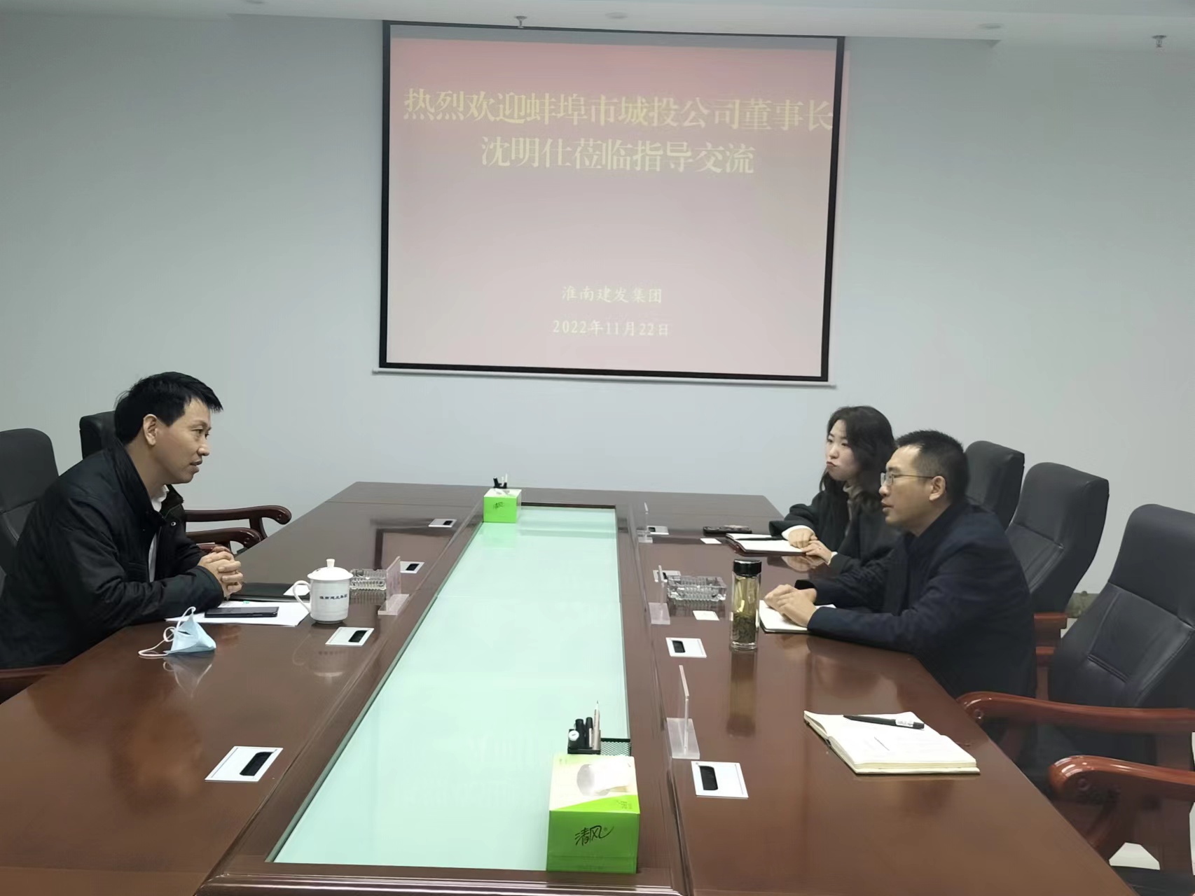 沈明仕對蚌埠市城市投資控股有限公司的發(fā)展情況進行了簡要介紹,雙方就平臺公司發(fā)展中遇到的共性問題進行深入溝通,并對未來發(fā)展前景提出設(shè)想。
