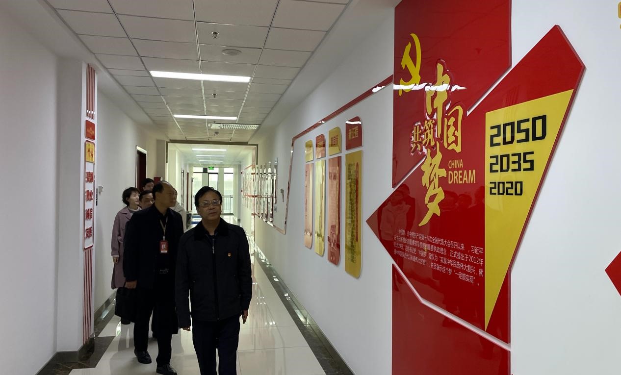 評(píng)審組一行查看黨建文化長廊陣地建設(shè)情況