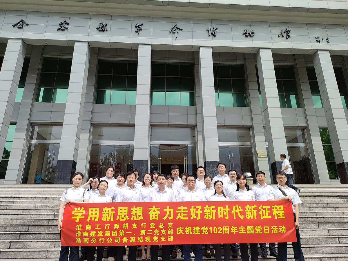 為慶祝中國共產(chǎn)黨成立102周年,弘揚偉大建黨精神,集團公司第一、二黨支部同淮南工行舜耕支行黨總支、淮南分行公司普惠結現黨支部走進(jìn)革命老區金寨,聯(lián)合開(kāi)展“學(xué)用新思想 奮力走好新時(shí)代新征程”主題黨日活動(dòng)。