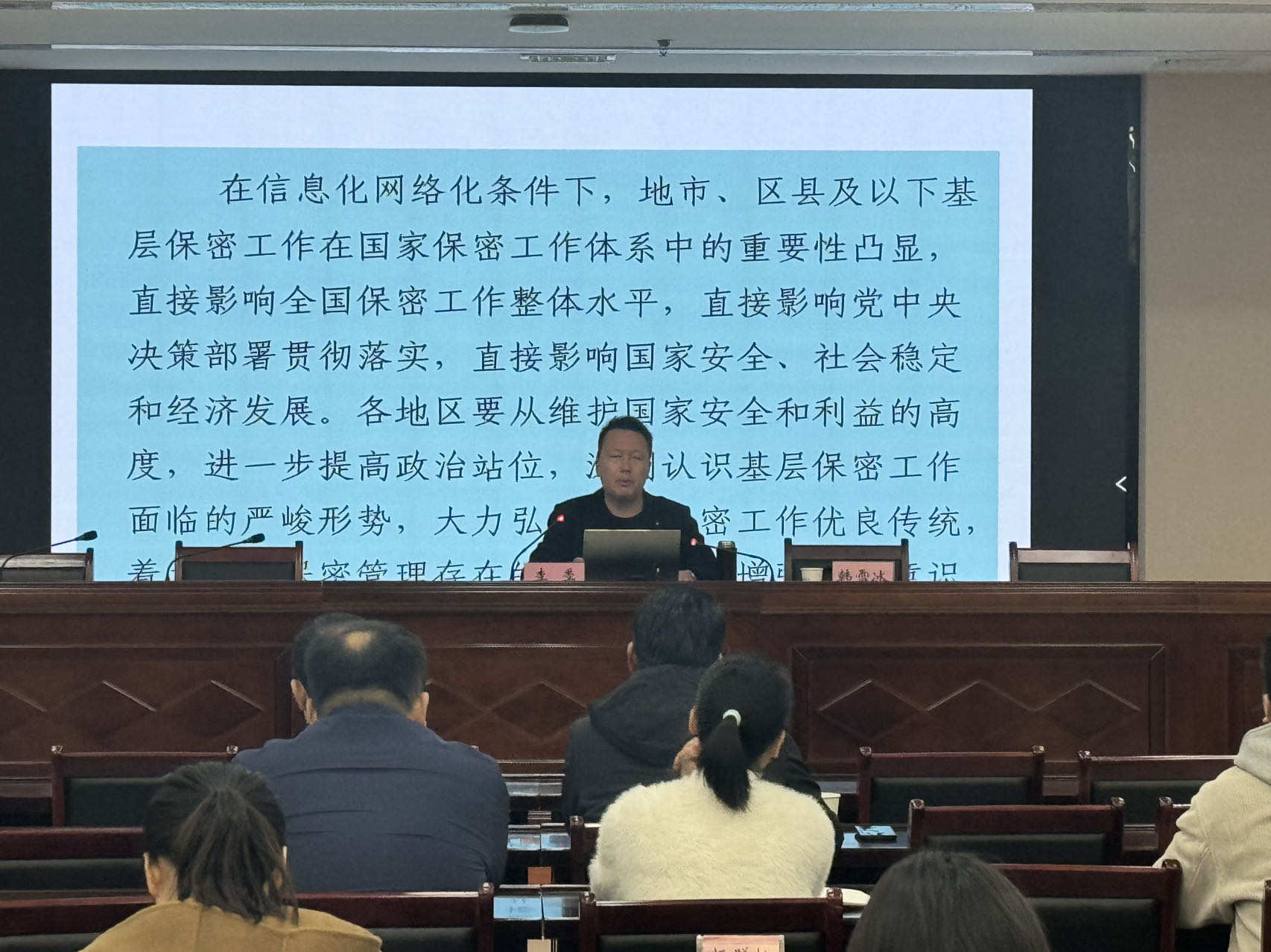 此次培訓邀請市委辦保密管理科科長(cháng)李季給大家授課,李季科長(cháng)從當前竊密與反竊密斗爭形勢、機關(guān)和單位保密管理存在的問(wèn)題、當前基層保密工作重點(diǎn)任務(wù)、機關(guān)和單位保密工作基本要求,圍繞保密工作的基本知識、保密日常管理、定密管理、涉密人員管理以及如何避免12種失泄密違規行為等進(jìn)行了詳細講解。