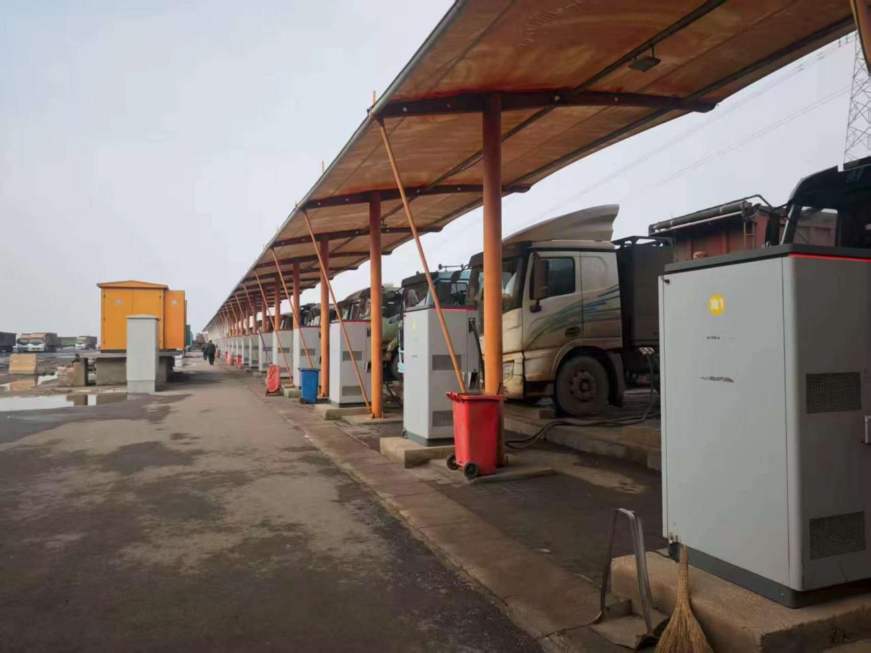期間,先后來(lái)到位于淄博市102省道的川運重卡站及唐山市曹妃甸港附近的萬(wàn)岑新能源充電站。從項目的規劃選址、周邊路網(wǎng)、用電負荷、投資建設、運營(yíng)管理及合作模式等方面,與管理及技術(shù)人員進(jìn)行了深入交流。其中,川運重卡站配置7臺320kW充電樁,日均充電量約1.2萬(wàn)度,萬(wàn)岑新能源充電站因緊鄰港口,配置320kW及400kW充電樁60臺,日均充電量約13萬(wàn)度。經(jīng)營(yíng)效果顯著(zhù),為公司建設經(jīng)營(yíng)充電站提供了關(guān)鍵參考和信心。